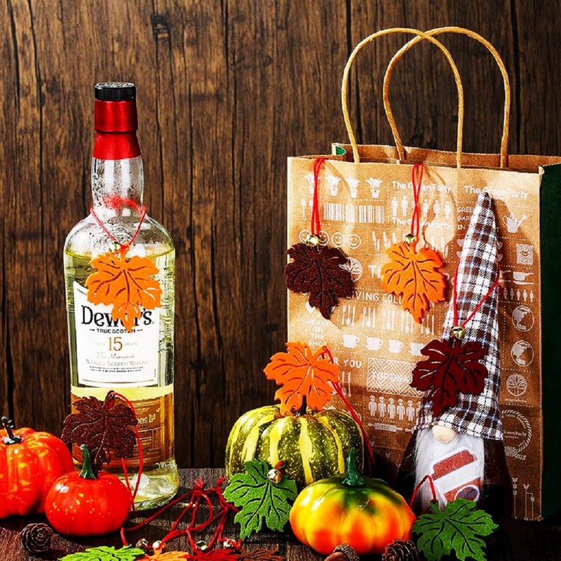 koundeneko 秋の飾り もみじ ペンダント 4色 20枚セット ベル付き フェルト製 メープルリーフ 感謝祭 飾り付け 店舗 部屋装飾 DIY ハンドメイド ラッピング用 ギフトタグ