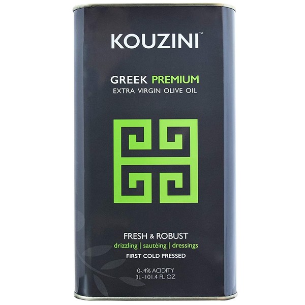 Kouzini Greek Premium Extra Virgin Olive Oil, 3 Liter Tin, Cold Pressed, Sing...