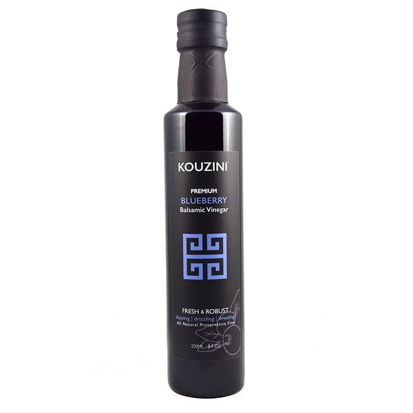 Kouzini Ultra Premium Blueberry Balsamic Vinegar, Aged Balsamic Vinegars from Modena, Italy, Premium, Smooth & Full-Bodied Flavor, 250ml Bottle