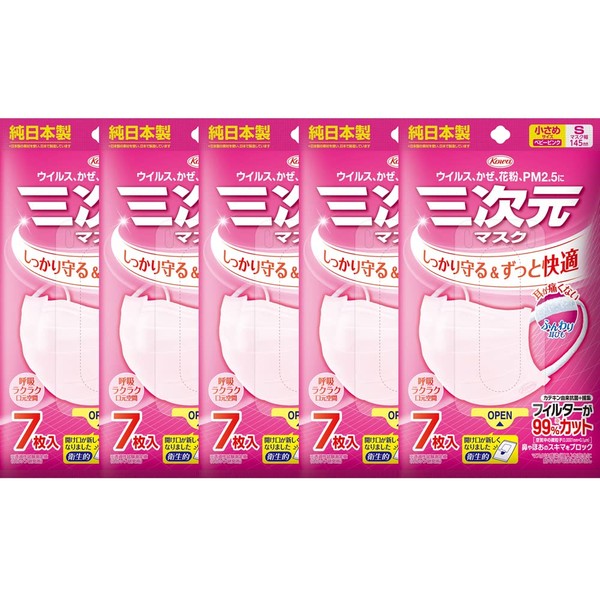 Kowa 3D Mask, Small, Baby Pink, 7 Pieces x 5 Sets
