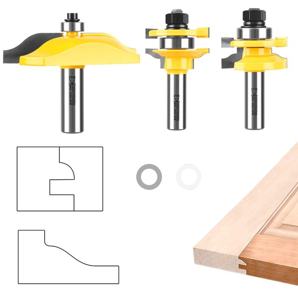**KOWOOD** Ogee 3 Bit Raised Panel Cabinet Door Router Bit Set 1/2-Inch Shank. This set is suitable for both professional carpenters and hobbyists.