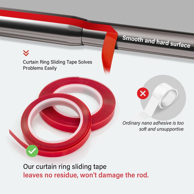 • Transparent and Clean: Our tape's transparent design blends seamlessly with any decor, adding elegance without distraction. It leaves no marks or residue, keeping your curtain rod spotless and pristine