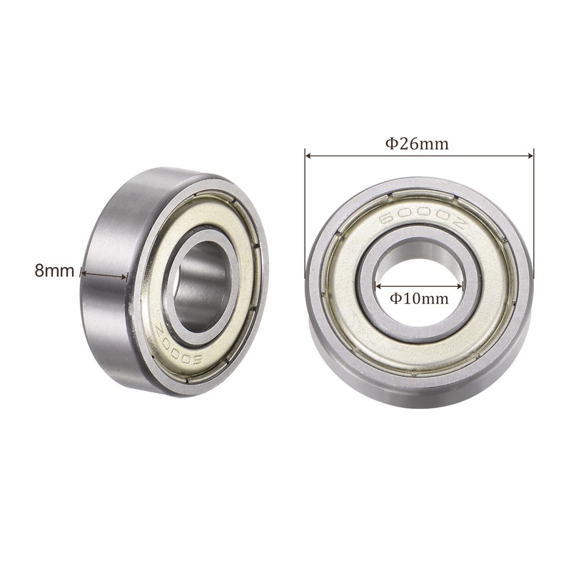 - 1- Package Contents - 10pcs 10mm Bore Dia x 26mm Outer Diameter x 8mm Thickness, single row, double shielded type deep groove ball bearings, ABEC3 precision.
