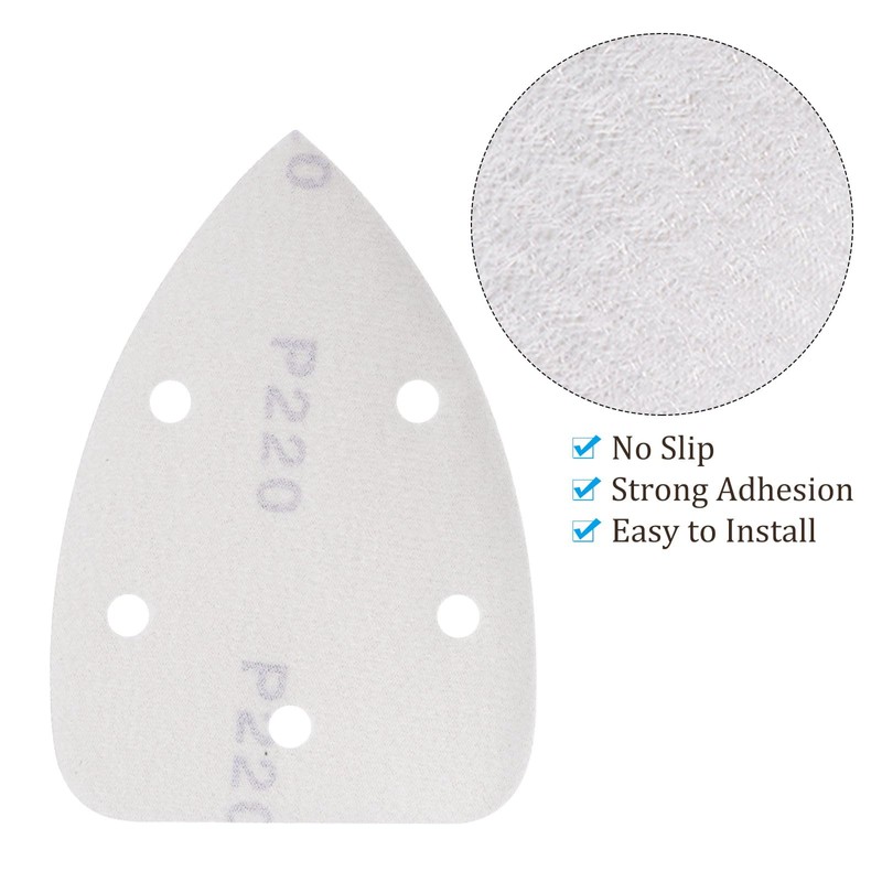 - 1- PACKAGE CONTENTS - 18pcs detail sander pads with 220 Grit, sized at 98mm x 139mm (3.9" x 5.5"), perfect for your 139mm sander. Its small size and pointed tip allow for precise sanding in tight corners and hard-to-reach areas.