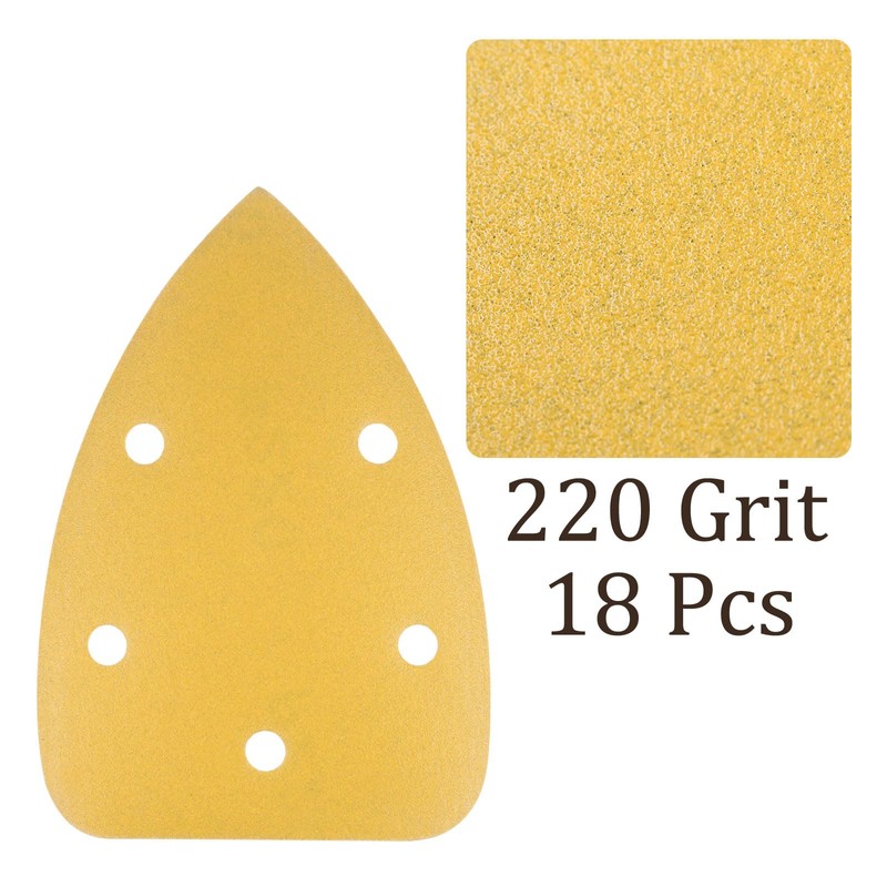 Kozelo 18pcs Mouse Detail Sander Sandpaper - [5-Hole 220 Grit] Aluminum Oxide Triangle Hook and Loop Sanding Pads Sheet for Sanding and Polishing Wood Furniture Metal Use