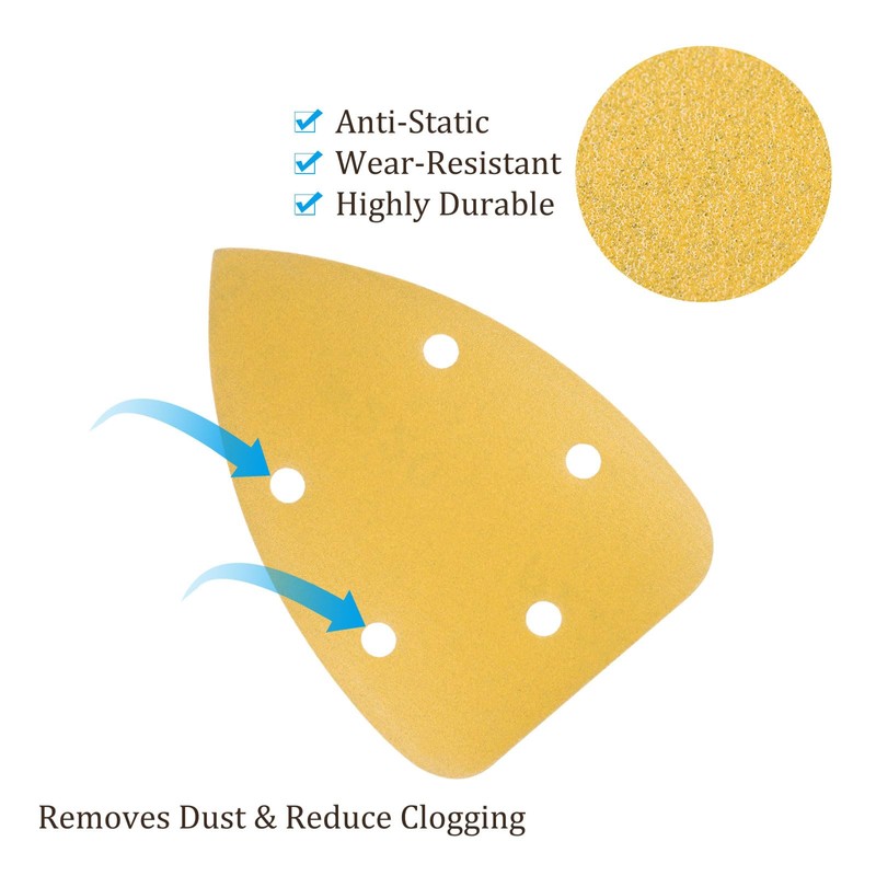 - 2- MATERIAL - The palm sander sandpaper is made with quality aluminum oxide with a uniform grit distribution and won't shrink or deform, which is anti-static, wear-resistant, and highly durable.