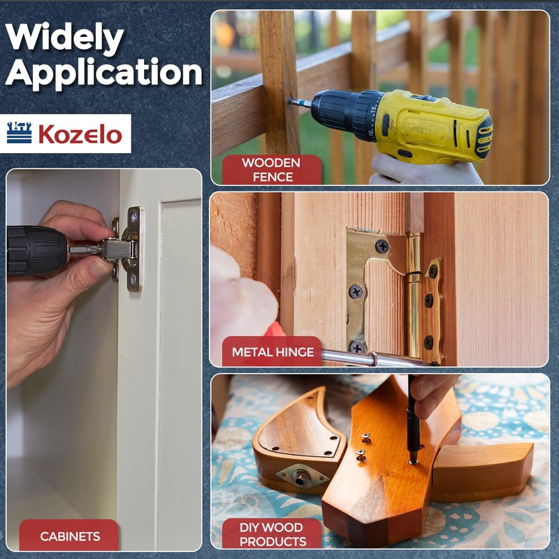 • 4- APPLICATIONS - Cross recessed countersunk wood screws are versatile fasteners designed for flush-mounting in woodworking projects. Their tapered heads sit perfectly flat in countersunk holes, making them suitable for furniture assembly (tables, chairs, cabinets), interior trim (baseboards, moldings), and outdoor construction (decks, fences, pergolas).
