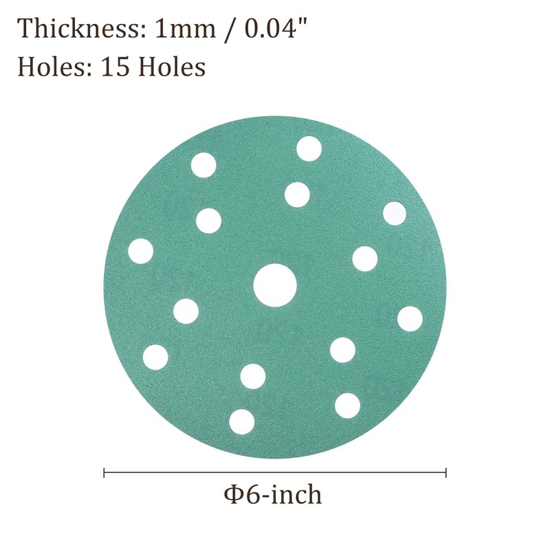 - 1- PACKAGE CONTENTS - Granularity: 120 Grits, Diameter: 6 Inch, Thickness: 1mm / 0.04", Holes: 15 Holes.