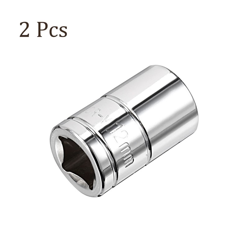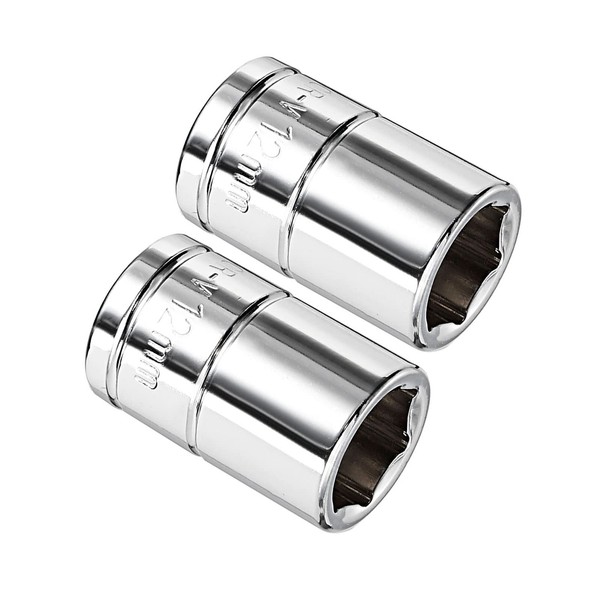 Kozelo 2pcs 6 Point Shallow Socket - [3/8 Inch x 12mm] Square Drive for Car Mechanical Equipment Repair Use, CR-V Steel Metric Sizes