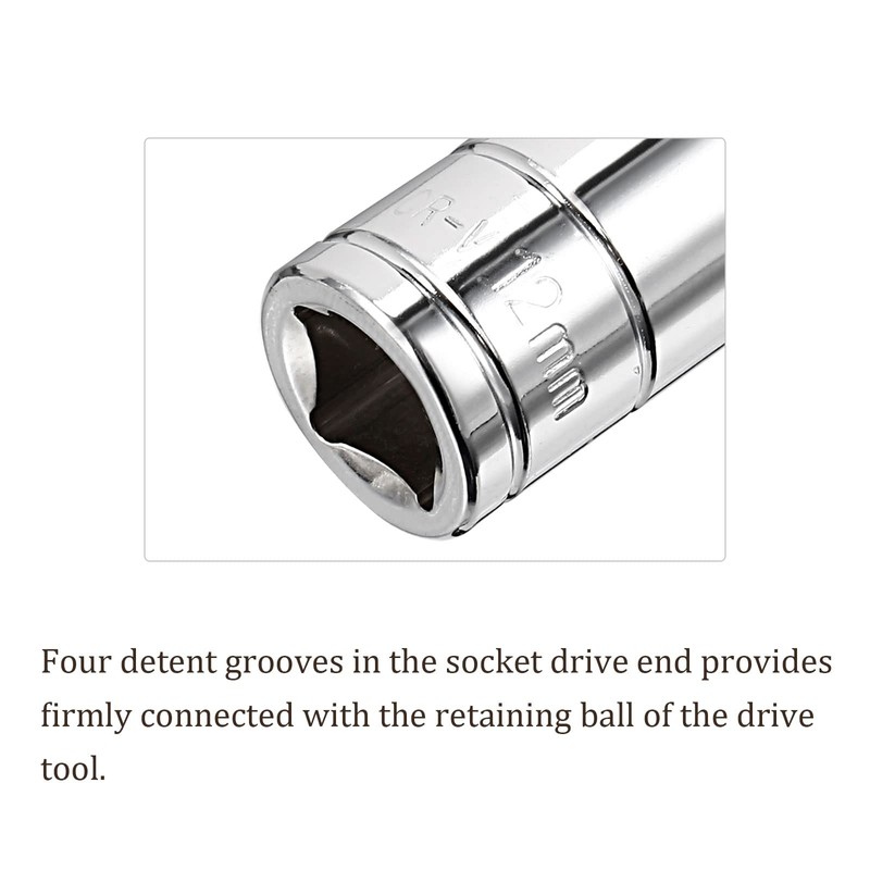 - Four detent grooves in the socket drive end provides firmly connected with the retaining ball of the drive tool.