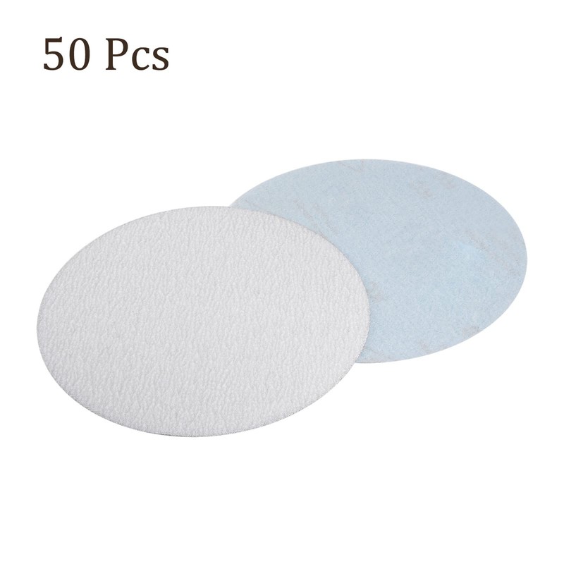 - 1- Package Contents - 50 Pcs 6 inch hook and loop sanding discs 240 Grits.
