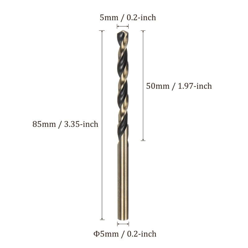 - 1- PACKAGE CONTENTS - 5PCS 5mm/0.2" metric twist drill bit with 50mm / 1.97" blade length, and total length is 85mm / 3.35".