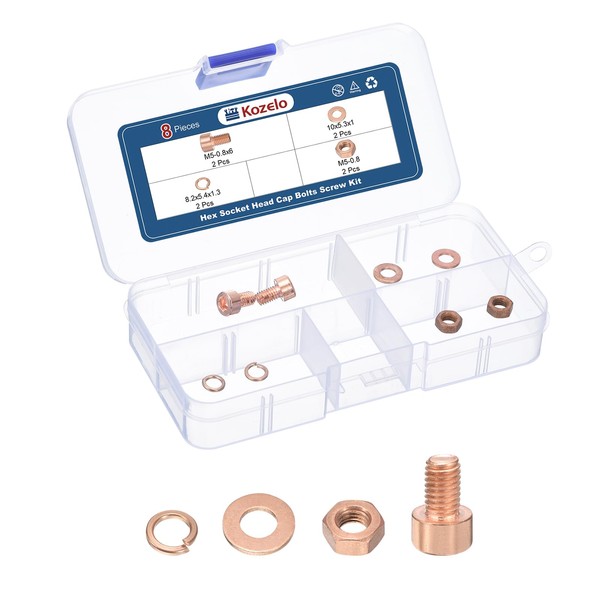 Kozelo 8pcs M5 Socket Head Cap Screws Bolts Nuts Assortment Kit - [M5-0.8x6mm] Red Copper Fully Threaded Hex Screw for 3D Printer Use