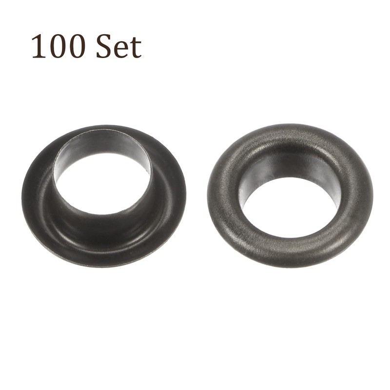 Kozelo Grommets Kit 100set-[8mm 1/3" Hole] Metal Eyelets Grommet Tool for Scrapbooking Clothes DIY Project Use, Tiny Grommet, Dark Grey