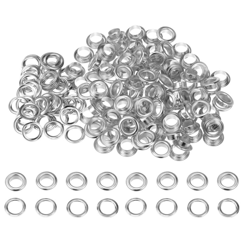 - 1- Package Contents - 100set grommets kit with 8mm / 1/3" eyelet inner dia and 13.5mm / 0.53" eyelet outside dia.