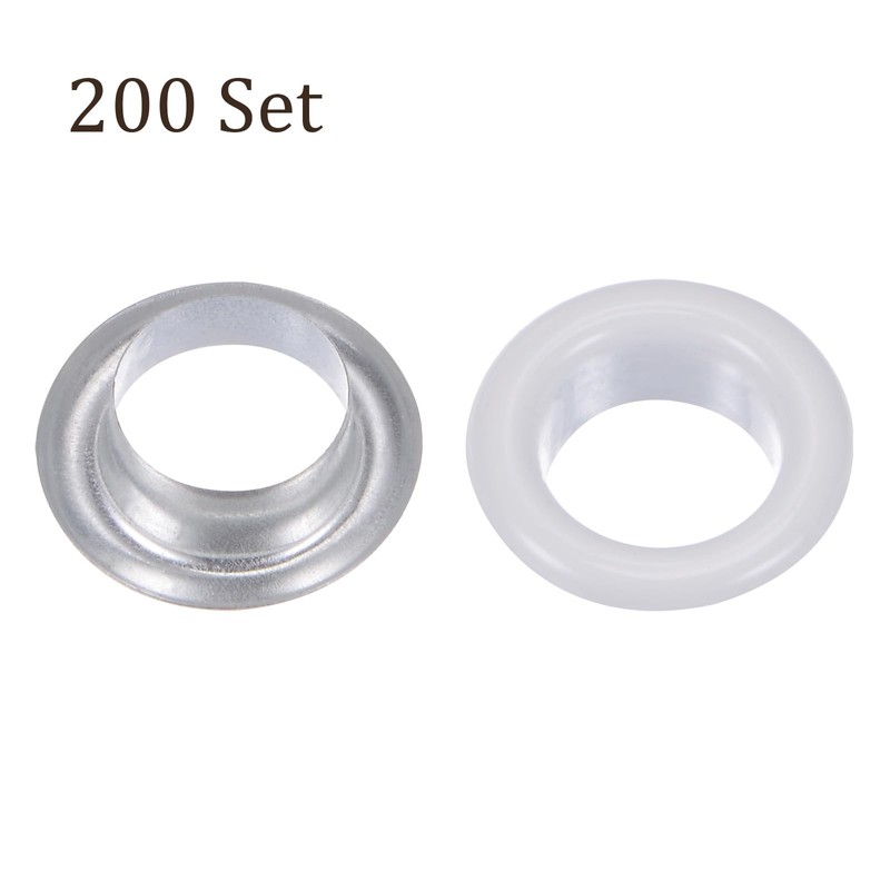 Kozelo Grommets Kit 200set-[10mm 7/16" Hole] Metal Eyelets Grommet Tool for Scrapbooking Clothes DIY Project Use, Tiny Grommet, White