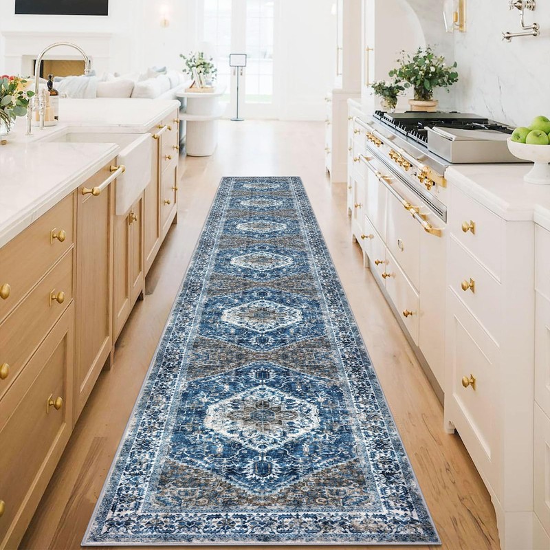 2. With vintage-style colors, the entryway runner rug washable create the look of a well-loved heirloom.