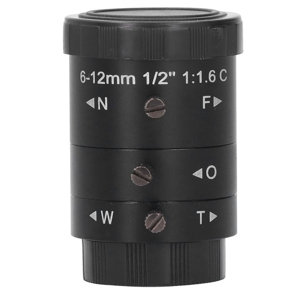 1、6‑12mm adjustable focal length, with manual focusing ring and aperture ring, can obtain clear images at different focusing distances. 2、Easy to install and disassemble will not affect the installation and use of other accessories. 3、Using high‑quality industrial optical glass, multi‑layer coating processing technology, large aperture, greater light input, clear and lifelike images, high transmittance, clear picture quality. 4、Body is made of high‑quality aluminum alloy material, sturdy and durable. 5、3MP high definition lens, observe objects more clearly, higher picture restoration, better using experience.