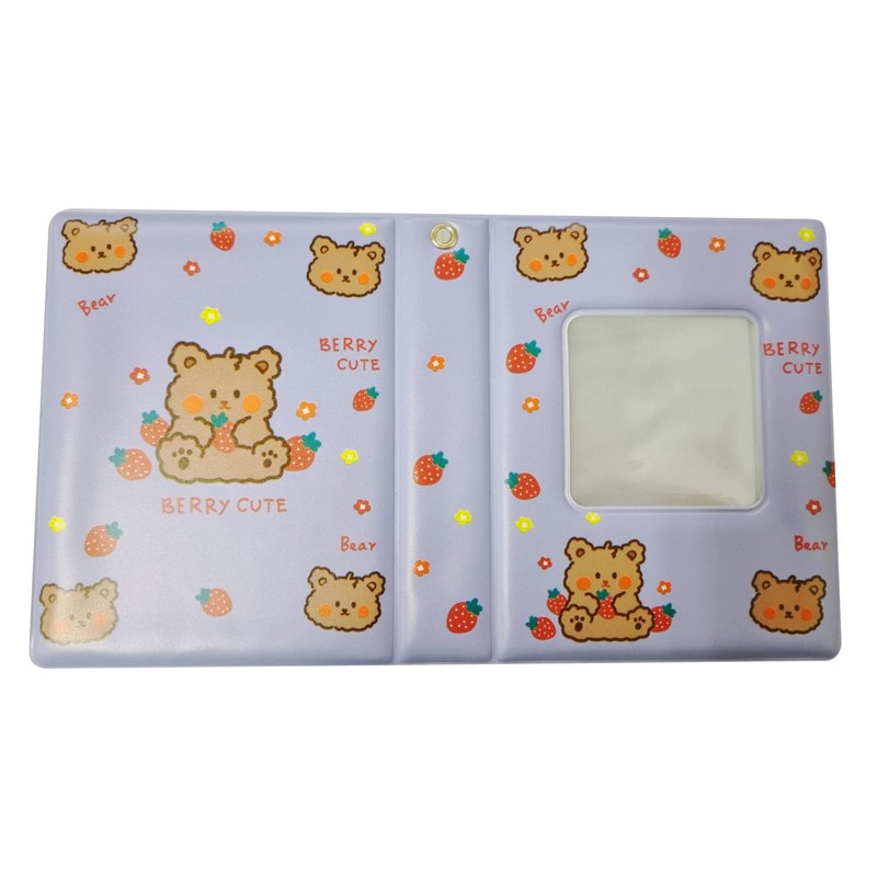 Kpop Photocard Album Mini Photo Sleeve Binder with 32 Pockets (Square Cover) + 2pcs Kpop Idol Photocard - Portable Collector Book for Polaroid Films/ID Card/Name Card/Photo Card (Bear)