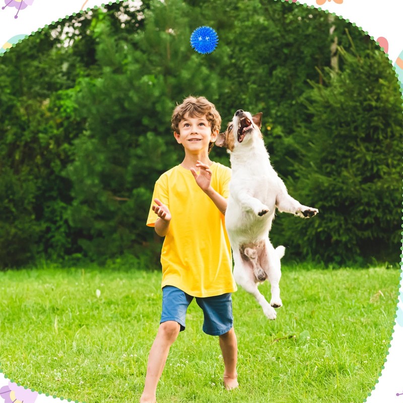 - Interactive Squeaky Fun: Each spiky dog ball features a built-in squeaker to stimulate your dog’s curiosity and keep them engaged. The high-pitched sound encourages playtime, making it ideal for boredom relief and interactive fetch games in the yard, park, or even poolside.