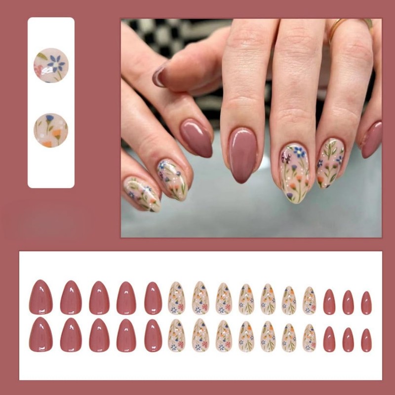 - Easy to Use: The floral artificial nails short almond are easy to trim.It only takes 10 minutes to get your favorite nails.Stick on nails for women is also easy to file and trim, A few simple steps will make it easy for you to get the effect of doing a nail salon at home