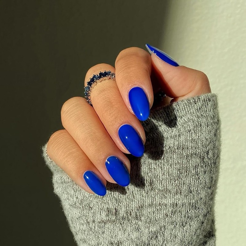 KQueenest Upgrade Thick Acrylic Press on Nails Short Oval, Royal Blue Fake Nails for Women Daily Wear, UV Cover Acrylic Nails Press on Short Almond, Natural Fit Reusable Glue on Nails in 24 Pcs