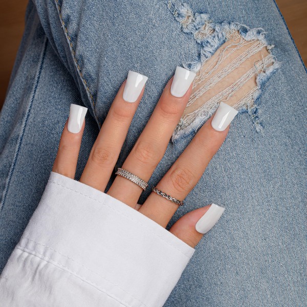 - Medium Nails Press ons in Minutes:Skip the salon without compromising on quality. These easy-to-apply press on white nails press on give you a salon-fresh finish in minutes, saving you time while delivering a clean, polished appearance that lasts