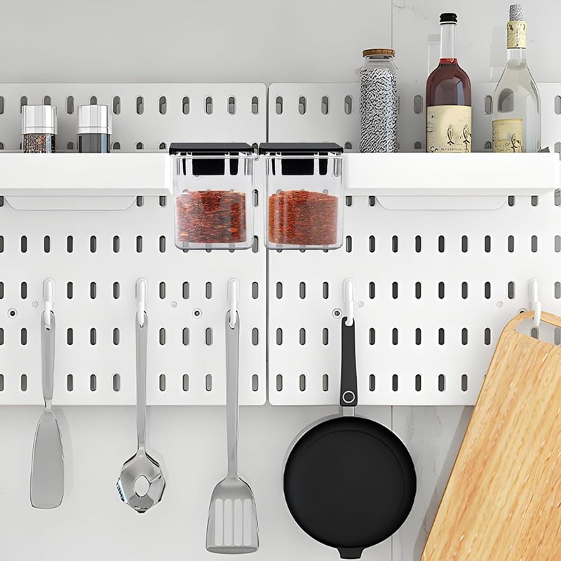 - KEEP YOUR ITEMS ORGANIZED Use hole wall containers for small tools that provide plenty of space to keep your space clean, tidy and organized. Ideal for bedrooms, bathrooms, kitchens, offices, but also for shops or warehouses