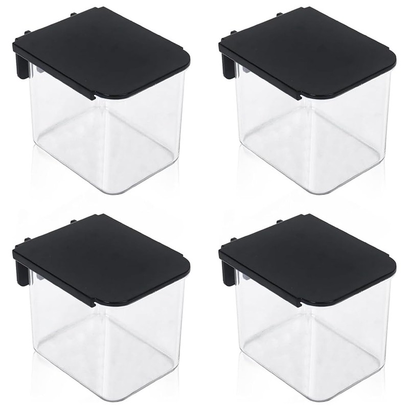 Kquepo Pack of 4 Pegboard Accessories with Lids, 3.9 x 3.2 x 3.2 Pegboard Containers with Hooks, Clear Plastic Pegboard Containers