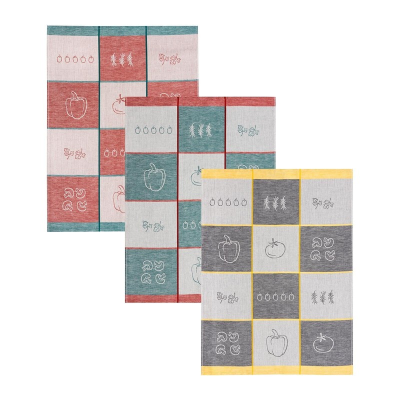 Kracht Pack of 3 Half-Linen Tea Towels Vegetable Check 50 x 70 cm