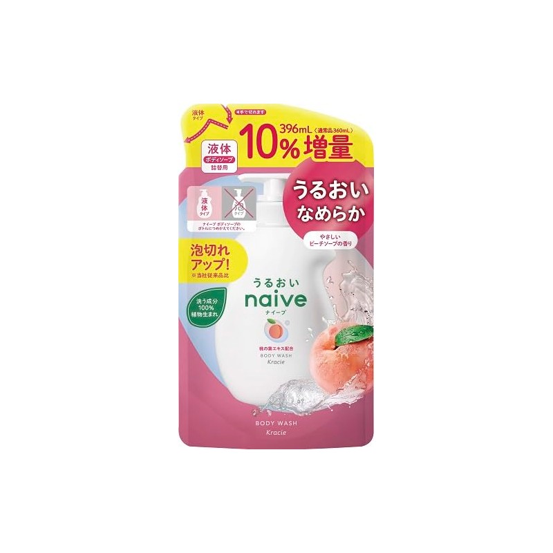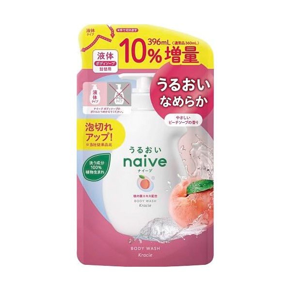 Kracie Naive Body Soap, Peach Leaf Extract, Refill, 13.6 fl oz (396 ml)