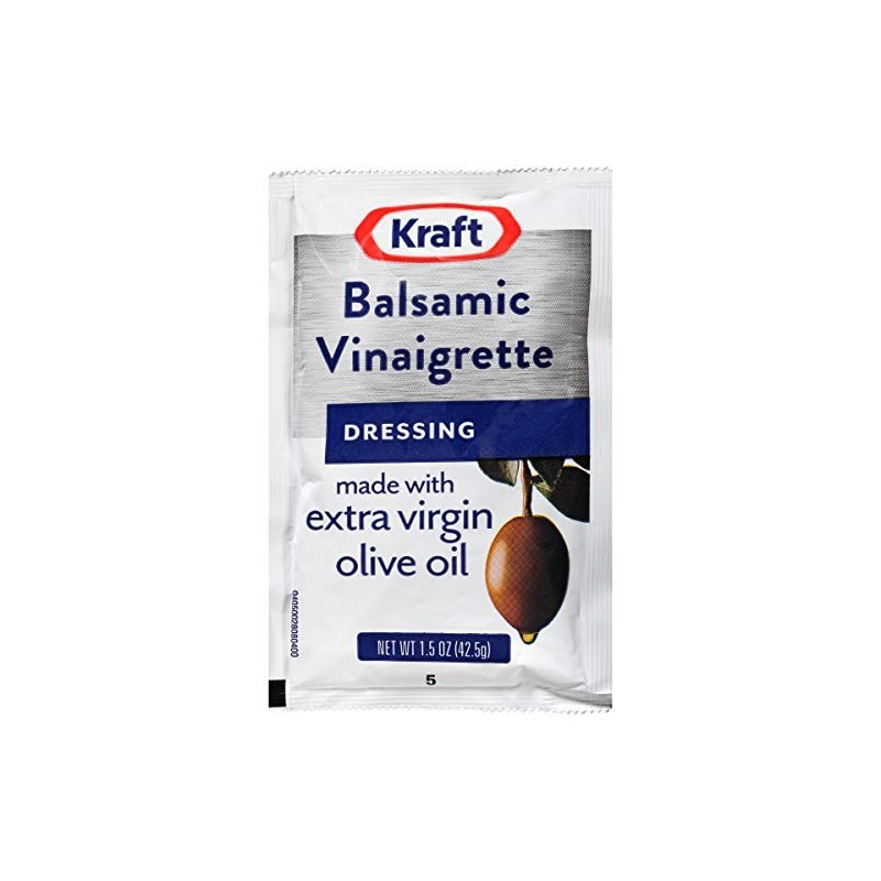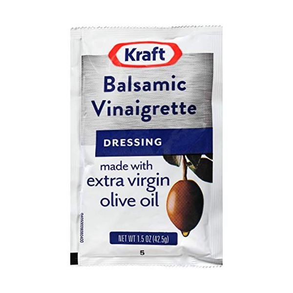 - KRAFT BALSAMIC VINAIGRETTE SALAD DRESSING PACKETS: Sixty 1.5 oz packets of Kraft Balsamic Vinaigrette Single Serve Salad Dressing with Extra Virgin Olive Oil
