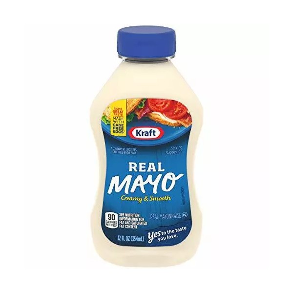 Kraft Real Mayo adds light flavor and creamy texture to all types of dishes. Made with cage free eggs, tangy vinegar, lemon juice and the perfect blend of seasonings, this family favorite mayonnaise delivers delicious flavor in every bite. This mayo is perfect for adding savory flavor to sandwiches, salads and more. Youll feel good about adding this real mayonnaise to all your favorite appetizers and entrees. You can also try adding this creamy Kraft mayo on sandwiches and hamburgers. This real mayonnaise is packaged in a resealable 12 ounce bottle to help lock in flavor. Refrigerate after opening.