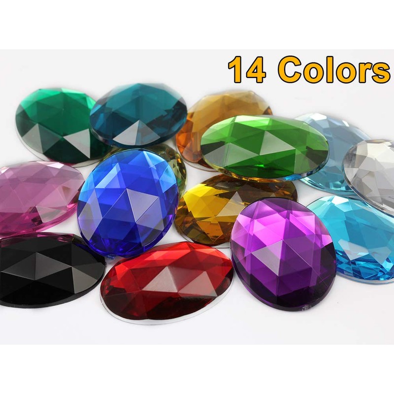 - Large Oval flat back acrylic (plastic) rhinestones are 40x30mm or 1 37/64" x 1 3/16" Height: 7mm (9/32"). Includes 4 High Quality Lead Free Acrylic Gems