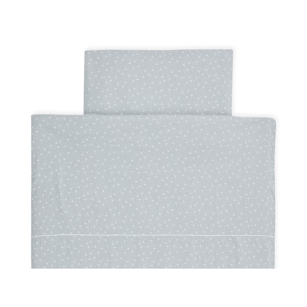 KraftKids Muslin Grey Dandelions Bedding Set with Pillow 40 x 60 cm and Duvet Cover 135 x 100 cm, Cotton Duvet Cover, Handmade Bed Linen, Made in the EU