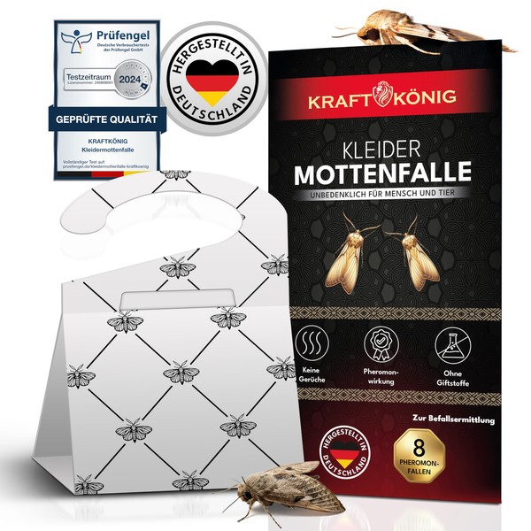 KRAFTKÖNIG Clothes Moth Trap White – 8 x Moth Traps Clothes Moths with Maximum Attraction for Determining Infestations, Also Suitable for Clothes Rails