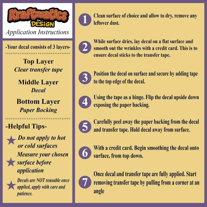 - Grab the decal and lay it on a flat surface. Using a credit card smoothen any wrinkles that may be on the decal. Flip it over and repeat the process. If the decal curls up you can use books to weigh it down. All of this is in order to ensure the decal is stuck to the transfer tape.