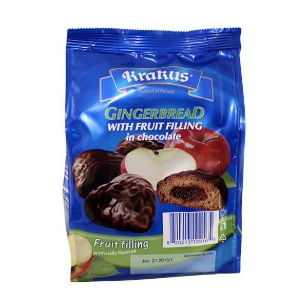Krakus Gingerbread Fruit Filling Covered in Chocolate - 5.64 oz (Pack of 2) (Apple)