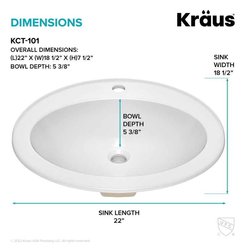 KRAUS Elavo 22 in. Oval Porcelain Ceramic Self-Rimming Drop In Bathroom Sink ...