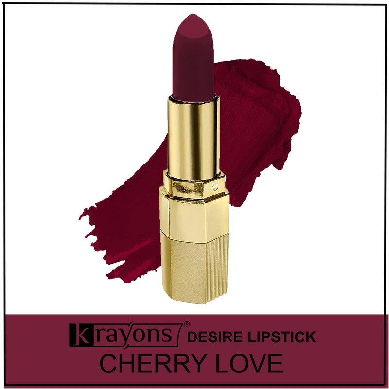 Krayons Desire Matte Lipstick, Highly Pigmented, Longlasting, 3.5g Each, Combo, Pack of 3 (Caramel Brown, Scarlet Red, Cherry Love)