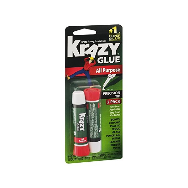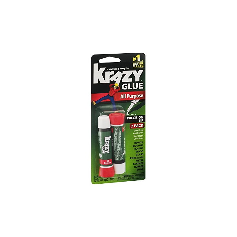 Krazy Glue All Purpose Instant Superglue (2g x 2 Tubes) Clear, Fast-Drying Adhesive, Precision One-Drop Applicator for Ceramic, Plastic, Wood, Glass, Rubber, Metal & More