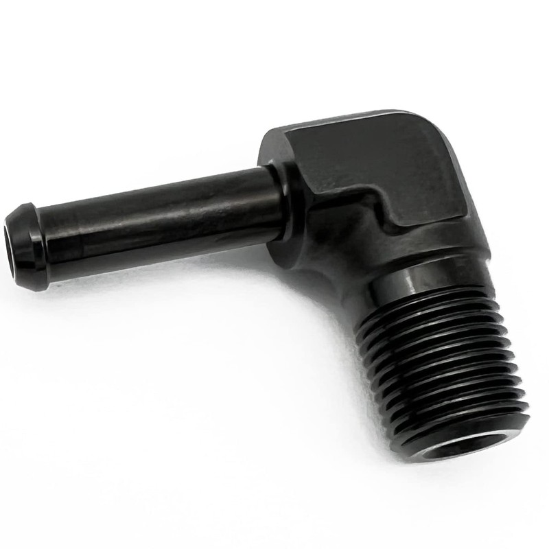 KRD PERFORMANCE Aluminum 90 Degree 1/8 NPT Male to 1/4"(6.35mm) Hose Barb Push On Fitting 1/8" NPT Thread to -4 AN Barb Fuel Pipe Adapter, Black
