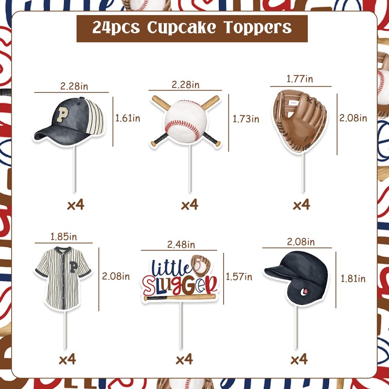 - Package Includes: Baseball baby shower decorations include 24pcs baseball cupcake toppers in 6 different pattern, which are perfect for baseball theme baby shower decorations