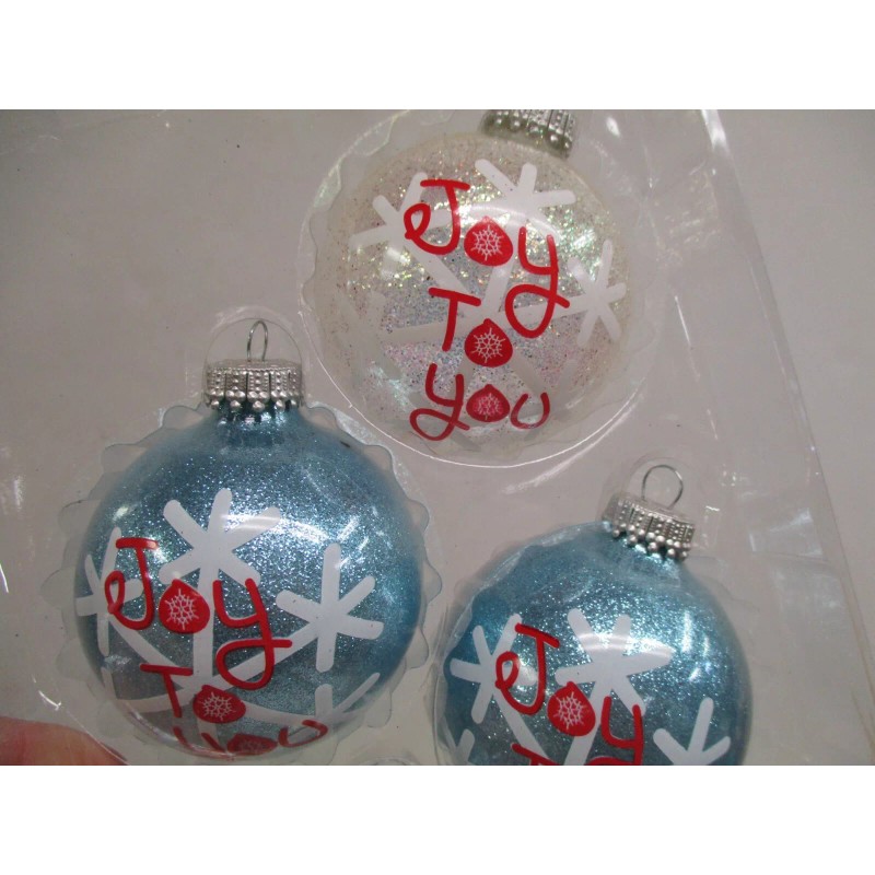 Krebs Christmas by Krebs Blue & White Glitter Glass Ornaments ~4pc New in Box