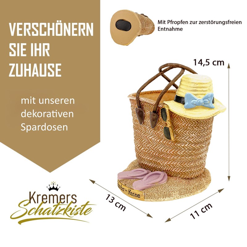 Kremers Schatzkiste Money Box Holiday Fund Beach Bag Holiday Till Piggy Bank