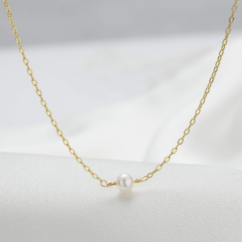KRENQUE Delicate Tiny Circle-Pearl Necklaces Cute Moon Trendy Necklace for Womens