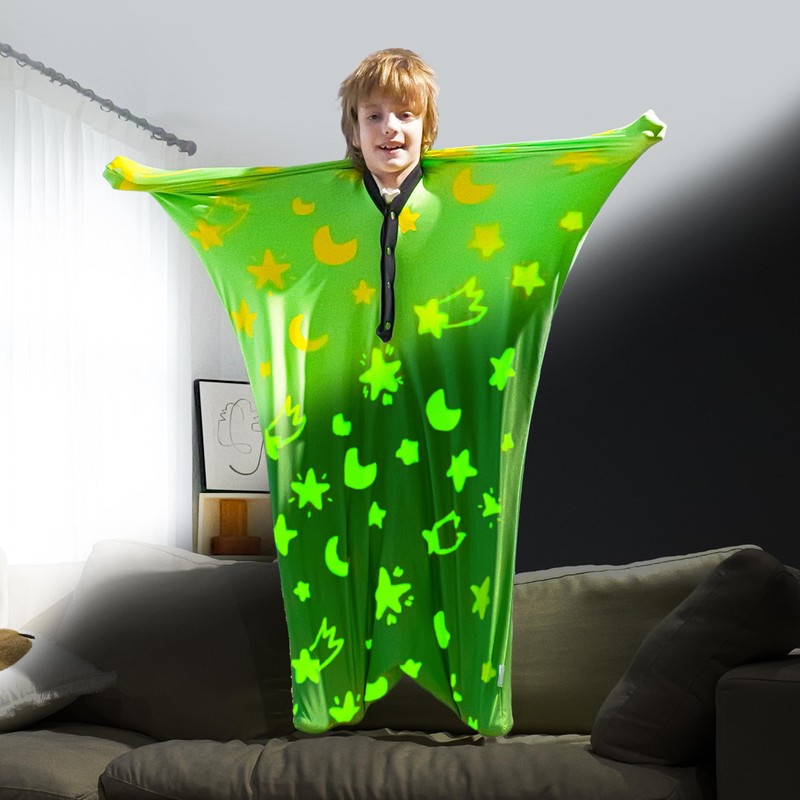KreyNa Sensory Body Sock is designed to support children’s sensory development while providing hours of fun! Crafted from a stretchy 85% polyester and 15% spandex blend, this durable body sock offers gentle compression to improve body awareness and calm anxiety. Its glow-in-the-dark star and moon prints add a magical touch to nighttime play, helping kids aged 3-12 engage their senses in creative ways.