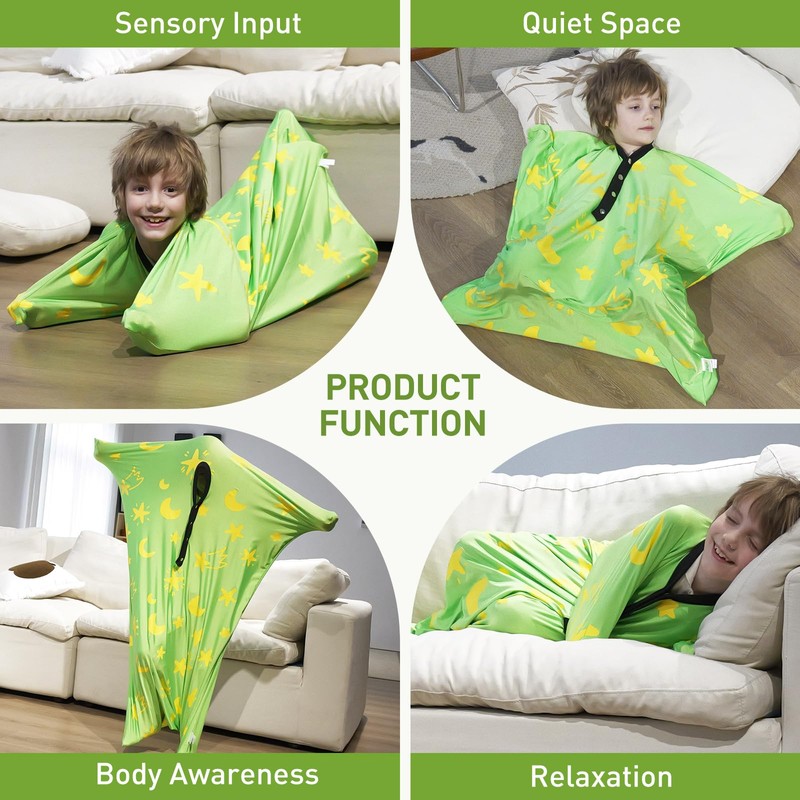 - Glow-in-the-Dark Fun & Calming: Spark creativity with glow-in-the-dark stars and moons! This sensory sock enhances balance, spatial awareness, and self-calming, providing captivating visual stimulation. Perfect for kids with nighttime anxiety, autism body sock adds playful comfort to dark environments.