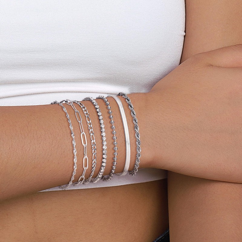 - ▶◆Is it worth buying this set? Each set contains 7 different individual silver or gold chain bracelets for women that can be worn as silver and gold layered bracelets, including paper clip chain, figaro, silver or gold bead chain, round link, twisted rope chain, tennis CZ chain, water wave chain and tiny dot bracelet. Each bracelet can be worn together or separately to match your daily dress.