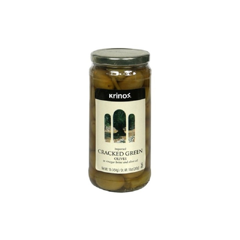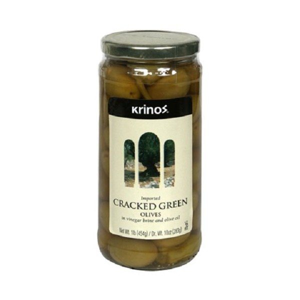 Krino's Green Olives Cracked, 16-Ounce Jars (Pack of 3)